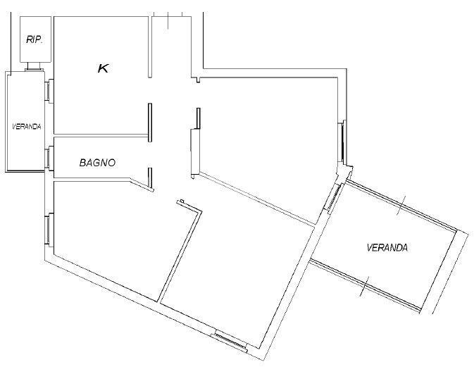 Ingresso, Salone doppio, Cucina, Corridoio, 2 Bagni, 3 Camere, Balcone verandato e Cantina.