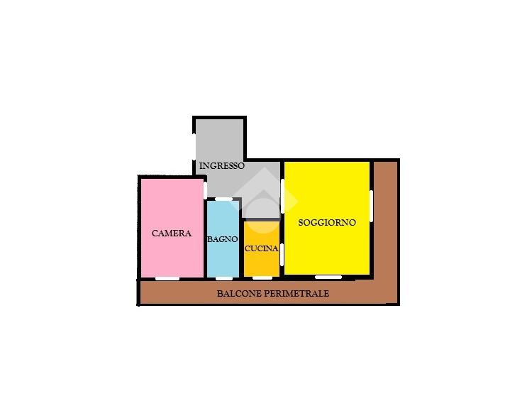 L'immobile si compone di un ampio salone, cucina, camera da letto, bagno e balcone angolare.